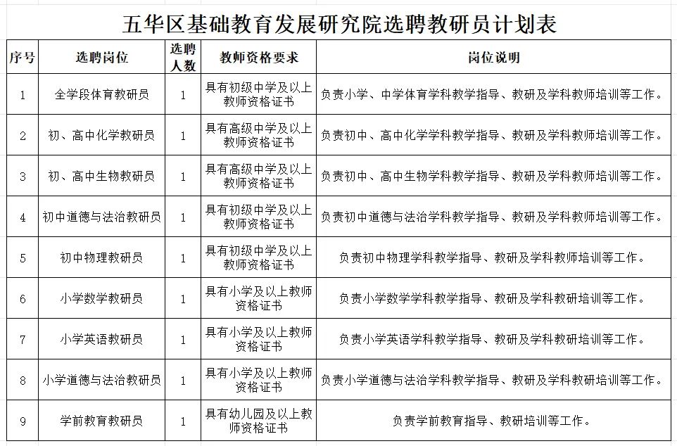 為貫徹落實上級關于基礎教育工作相關精神,按照“優(yōu)化結(jié)構(gòu),激發(fā)活力,常態(tài)流動”的思路,現(xiàn)決定開展五華區(qū)基礎教育發(fā)展研究院教研員選聘工作。