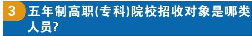 答:五年制高職(專科)院校招收參加我省當(dāng)年初中學(xué)生學(xué)業(yè)水平考試的應(yīng)屆初中畢業(yè)生,且考試成績須達(dá)到當(dāng)年五年制高職最低分?jǐn)?shù)控制線以上,按招生計劃擇優(yōu)錄取。
