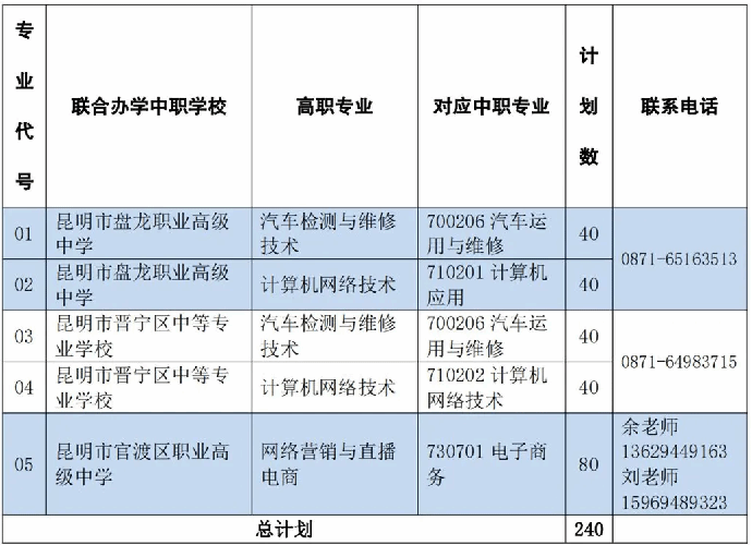 以上五年制高職(專科)招生計劃和專業(yè)最終以云南招考頻道公布為準(zhǔn)。