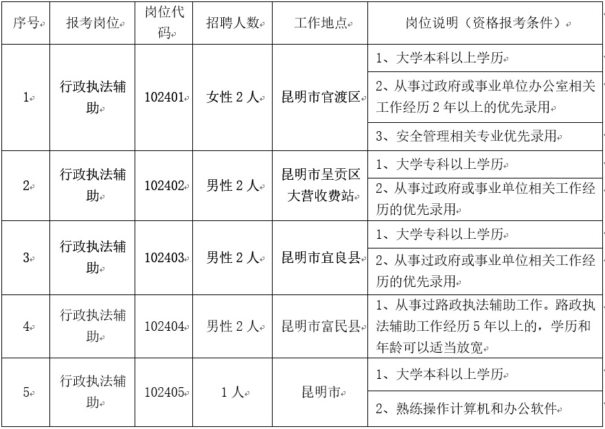 昆明市交通運(yùn)輸綜合行政執(zhí)法支隊(duì)2024年招聘行政執(zhí)法輔助人員公告
