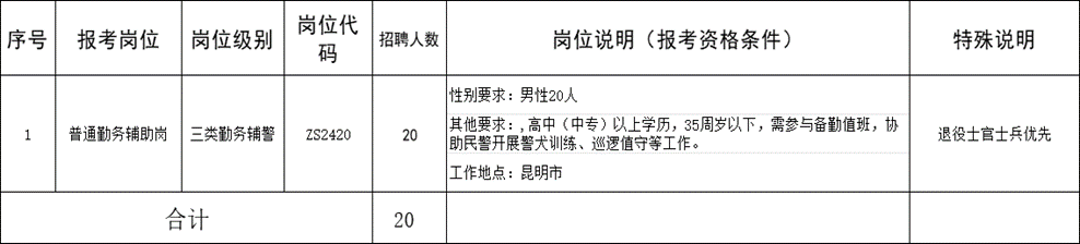 本次共招聘19人,單位為昆明市公安局各直屬部門,崗位信息如下: