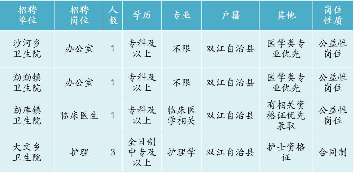 雙江自治縣醫(yī)共體總醫(yī)院2024年招聘公告(第二期)