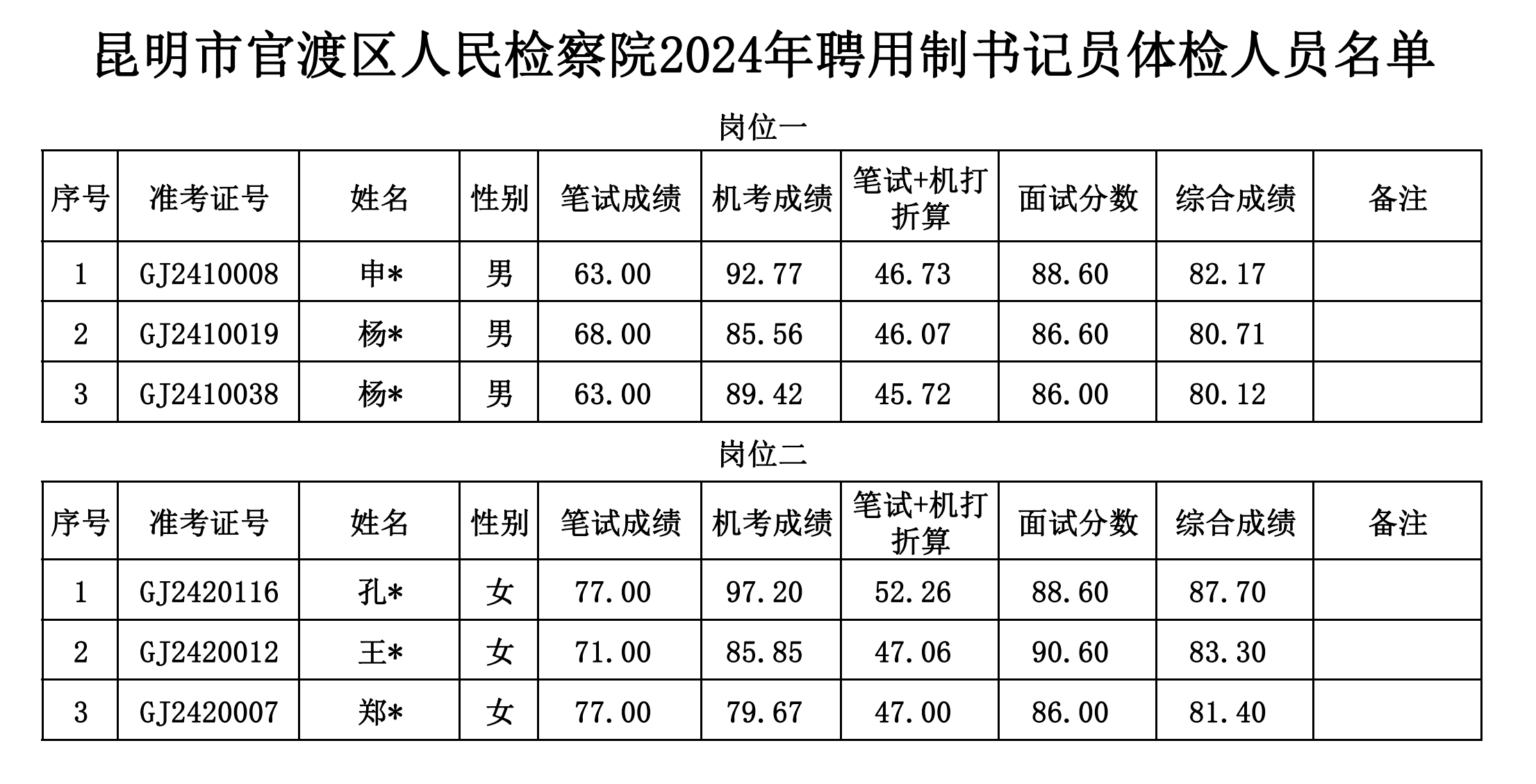 昆明市官渡區(qū)人民檢察院2024年公開招聘聘用制書記員體檢公告