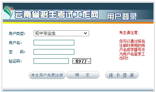 登錄云南省初中升高中管理系統(tǒng)(http://csgx.ynjy.cn/login),用戶名為考生14位學(xué)籍號,初始密碼為學(xué)籍號的后8位,首次登錄后必須修改密碼,按系統(tǒng)提示進行操作。具體操作方式詳見《云南省初中升高中招生管理系統(tǒng)使用說明(考生)》(附件1)。