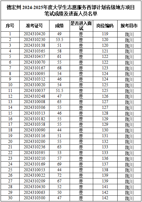 根據(jù)《關于做好2024-2025年度德宏州大學生志愿服務西部計劃地方項目志愿者招募派遣工作的通知》要求,隴川縣項目辦將于7月5日組織進入面試環(huán)節(jié)的志愿者考生進行面試,現(xiàn)將面試相關事宜公告如下:
