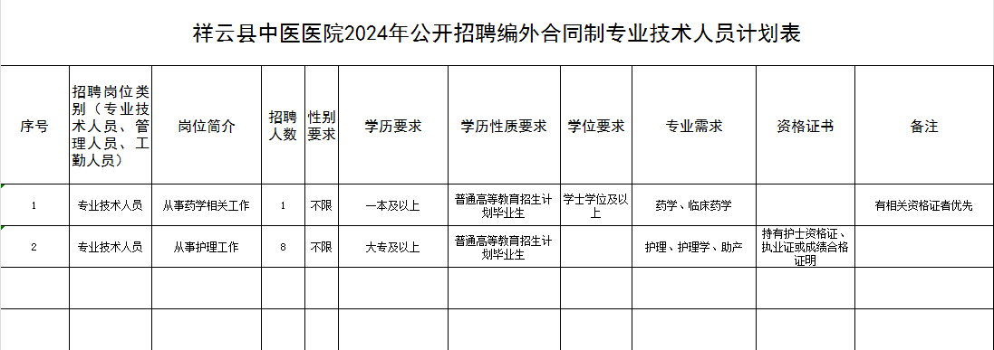 祥云縣中醫(yī)醫(yī)院公開招聘編外合同制人員公告