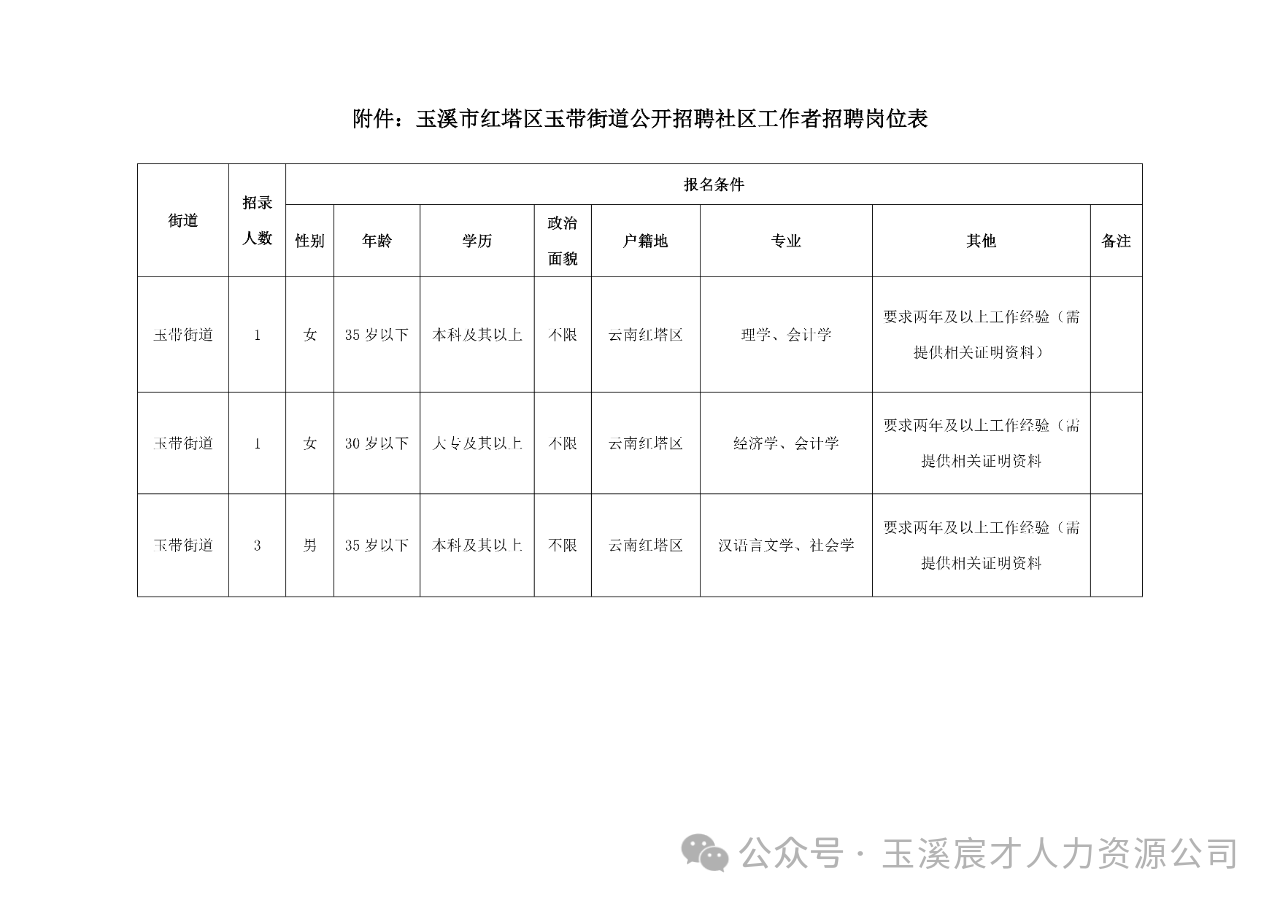 附件:玉溪市紅塔區(qū)玉帶街道公開招聘社區(qū)工作者招聘崗位表