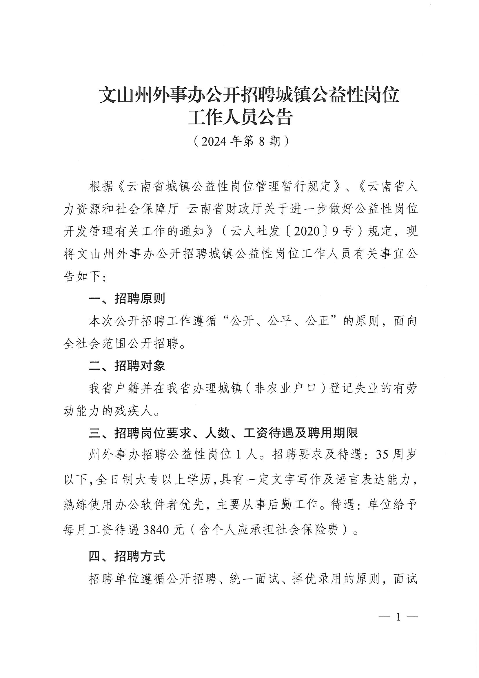 文山州外事辦公開招聘城鎮(zhèn)公益性崗位工作人員公告
