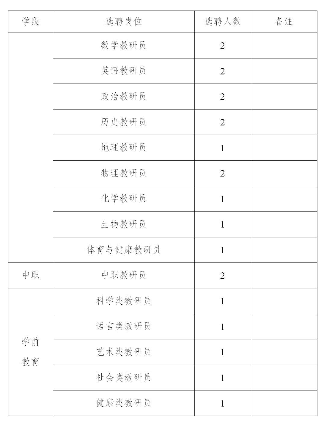 1.初中語文、數(shù)學(xué)、英語、道德與法治、物理、化學(xué)、生物、歷史、地理等崗位,需本科及以上學(xué)歷(且第一學(xué)歷須為普通高等師范類院校本科及以上)。