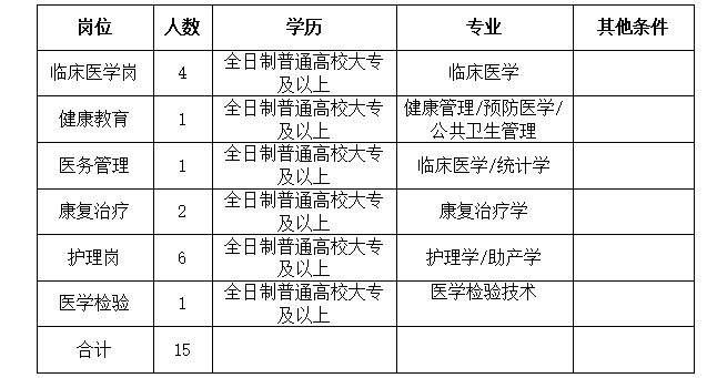 為進一步做好騰沖市婦幼保健計劃生育服務(wù)中心青年就業(yè)見習基地相關(guān)工作,根據(jù)《人力資源社會保障部教育部財政部商務(wù)部國務(wù)院國資委共青團中央全國工商聯(lián)關(guān)于進一步加強就業(yè)見習工作的通知》和省市有關(guān)文件精神,經(jīng)醫(yī)院研究,擬招聘高校畢業(yè)就業(yè)見習醫(yī)護技人員15名,結(jié)合崗位需求現(xiàn)將有關(guān)事項公告如下: