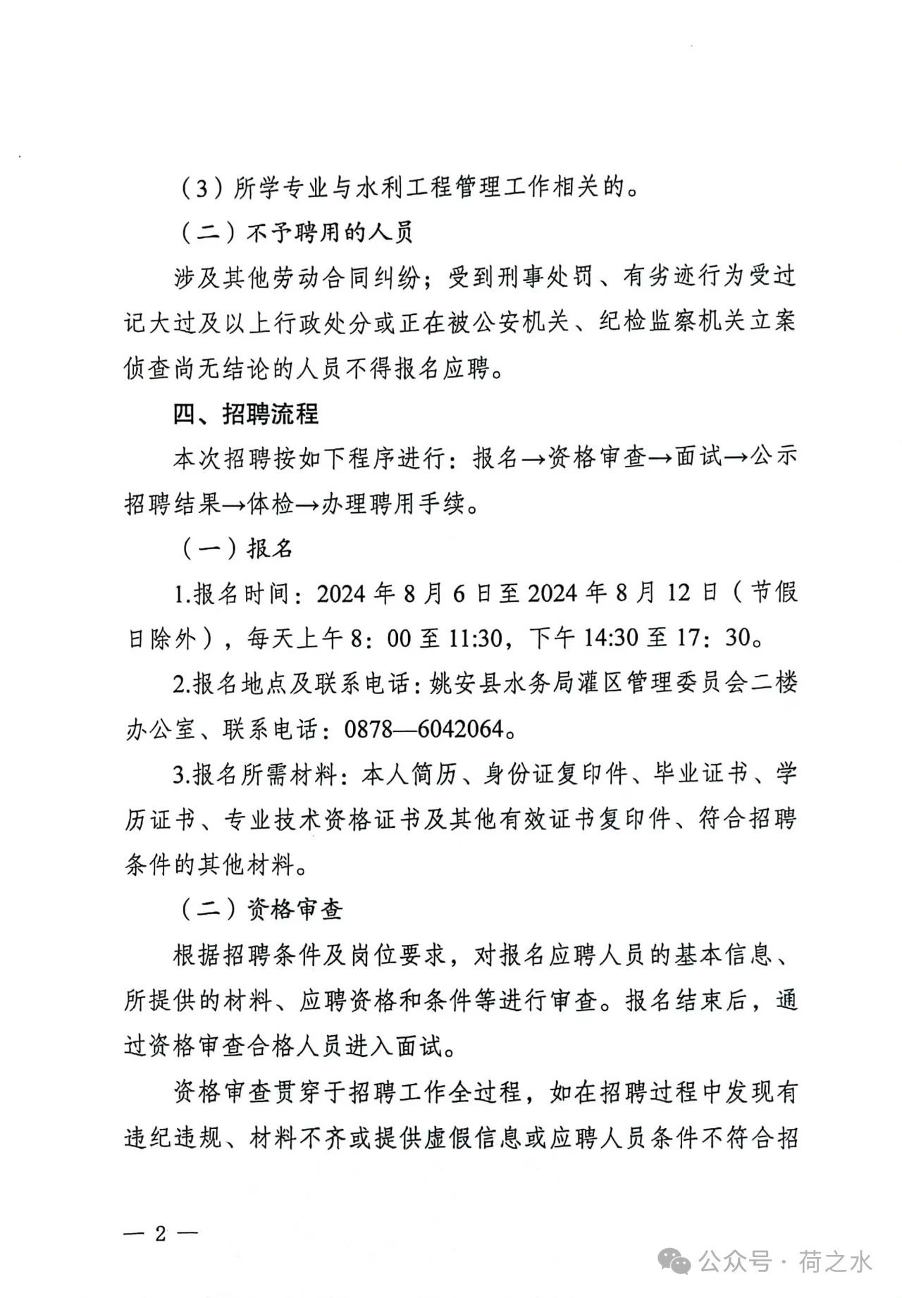 2024年8月楚雄州姚安縣水務(wù)局灌區(qū)管理委員會(huì)招聘工作人員公告