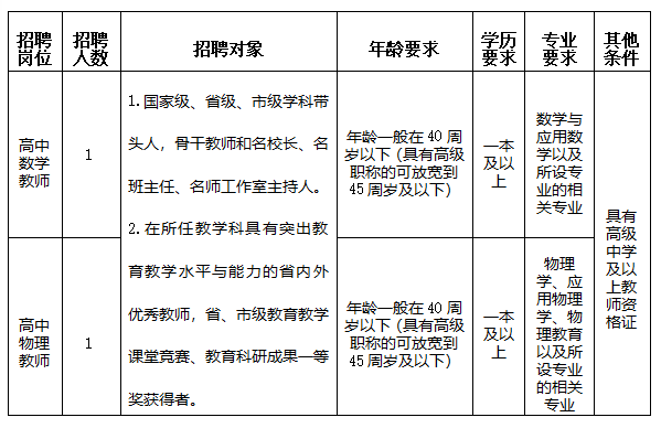 云南省保山第一中學(xué)2024年公開招聘急需緊缺專業(yè)教師2個(gè)崗位共2人。具體崗位如下: