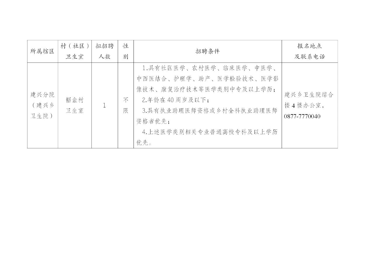 附件:新平縣總醫(yī)院漠沙中心分院、建興分院所屬部分村衛(wèi)生室鄉(xiāng)村醫(yī)生招聘崗位表