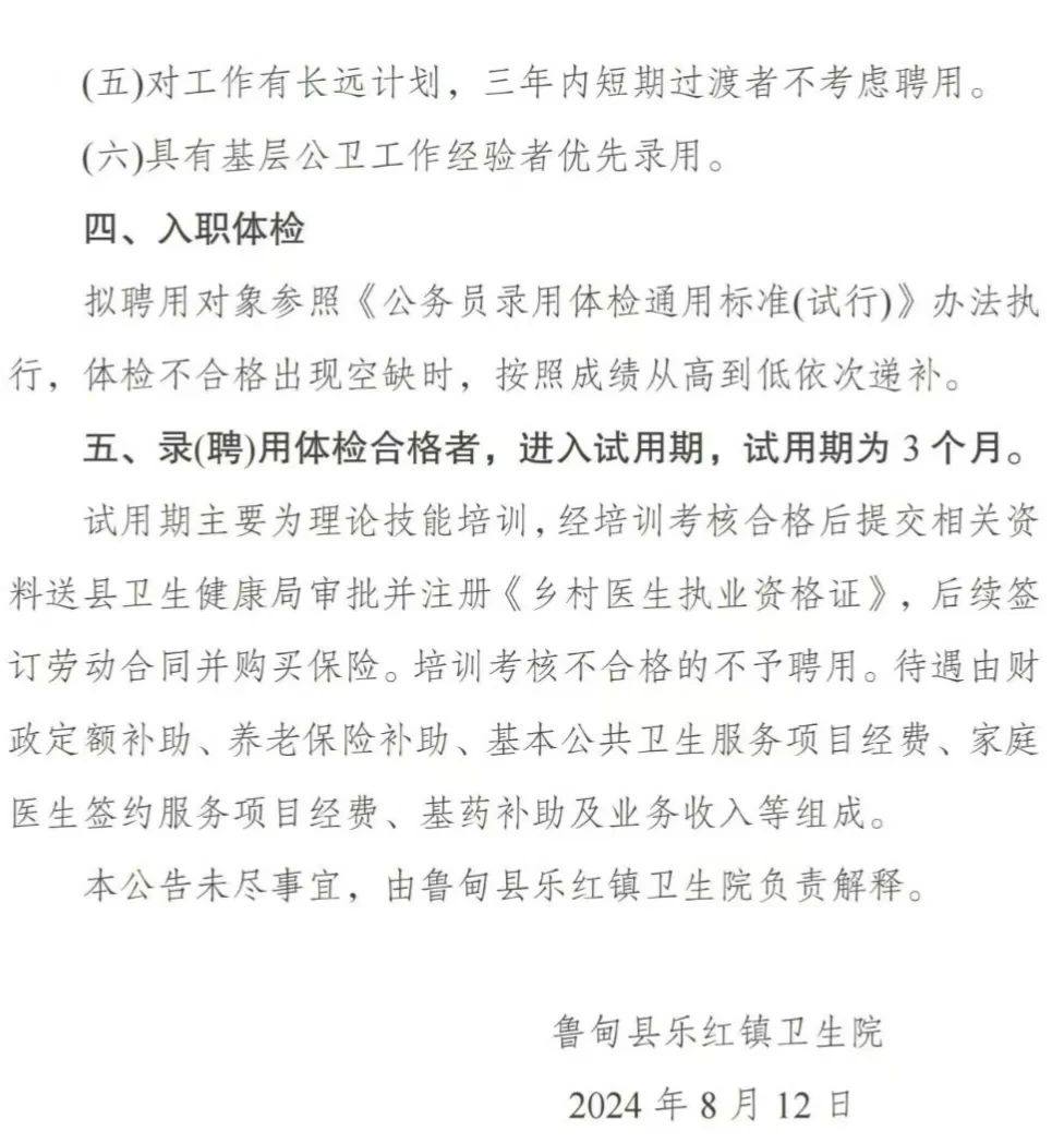 魯?shù)榭h樂紅鎮(zhèn)衛(wèi)生院公開招聘鄉(xiāng)村醫(yī)生公告