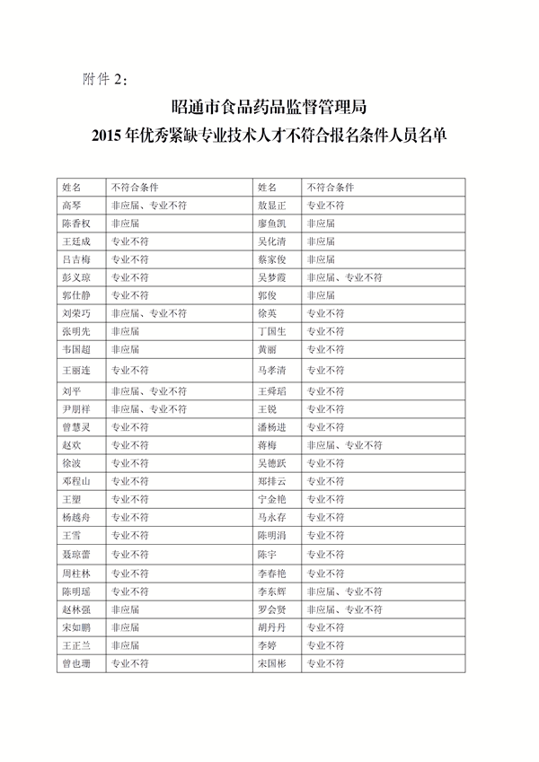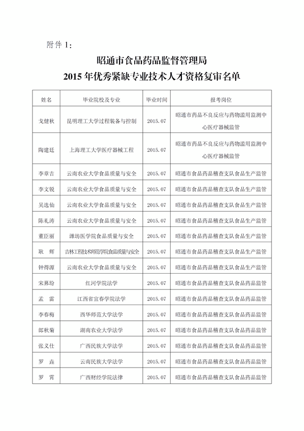 昭通市食品藥品監(jiān)督管理局2015年招聘資格復(fù)審等有關(guān)事宜通知