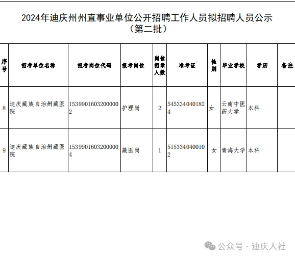 2024年迪慶州州直事業(yè)單位公開招聘擬招聘人員名單公示(第二批)