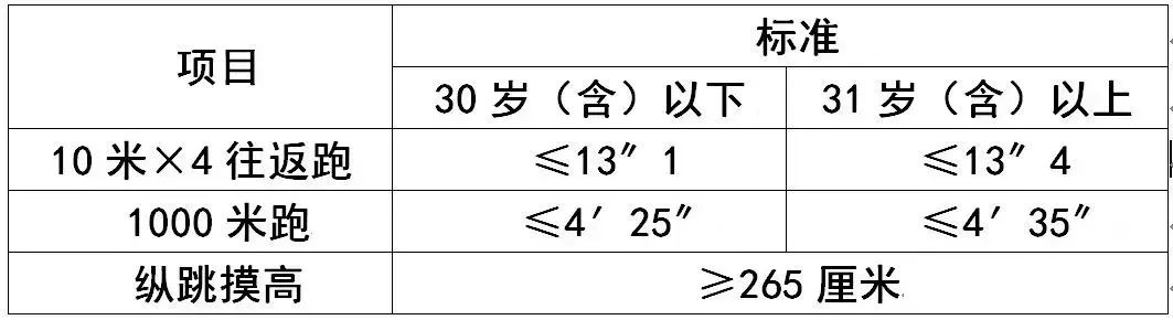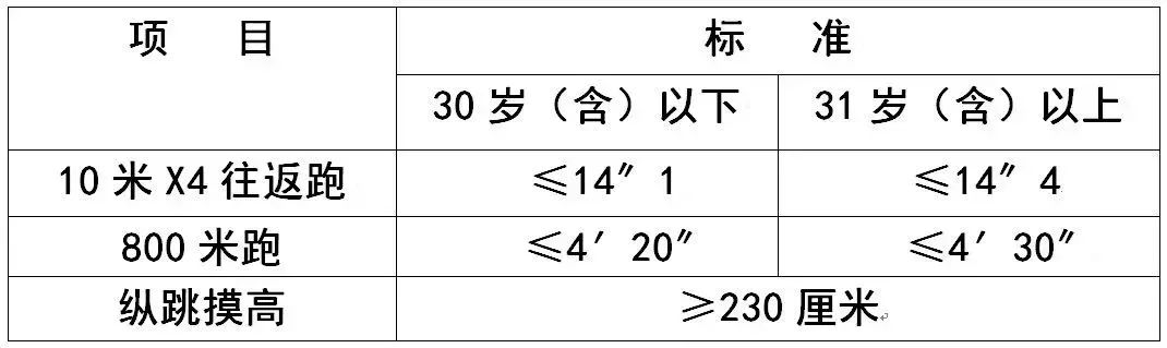 體能測(cè)評(píng)按照公安部《關(guān)于印發(fā)公安機(jī)關(guān)錄用人民警察體能測(cè)評(píng)項(xiàng)目和標(biāo)準(zhǔn)(暫行)的通知》及其所附標(biāo)準(zhǔn)開(kāi)展。
