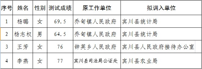 賓川縣2014—2015年政府系統(tǒng)公開選調(diào)公務(wù)員擬調(diào)動(dòng)人選公示