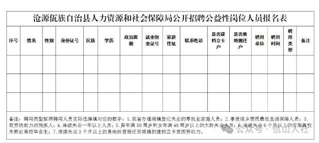 (二)報(bào)名地點(diǎn):滄源佤族自治縣人力資源和社會(huì)保障局三樓辦公室。