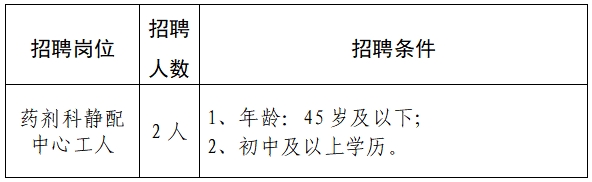 【招聘】藥劑科需招聘勞務(wù)派遣工作人員2名