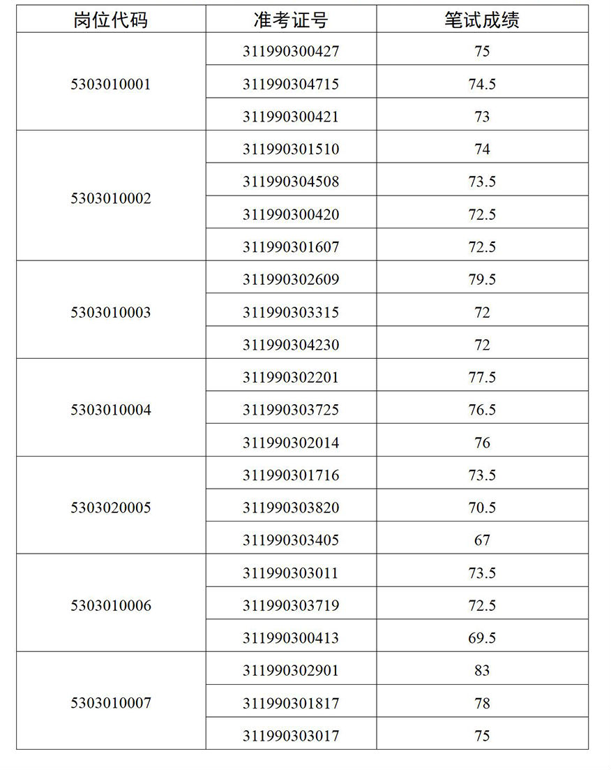 從報(bào)考中共云南省委社會(huì)工作部2024年公開(kāi)遴選公務(wù)員考試錄用崗位,筆試成績(jī)達(dá)到云南省2024年公開(kāi)遴選公務(wù)員考試筆試最低合格分?jǐn)?shù)線(xiàn)以上的考生中,根據(jù)筆試成績(jī)從高到低順序,以3:1的比例確定資格復(fù)審人員,按3:1比例末位出現(xiàn)筆試成績(jī)相同的,一并進(jìn)入資格復(fù)審,詳見(jiàn)《中共云南省委社會(huì)工作部2024年公開(kāi)遴選公務(wù)員資格復(fù)審人員名單》。