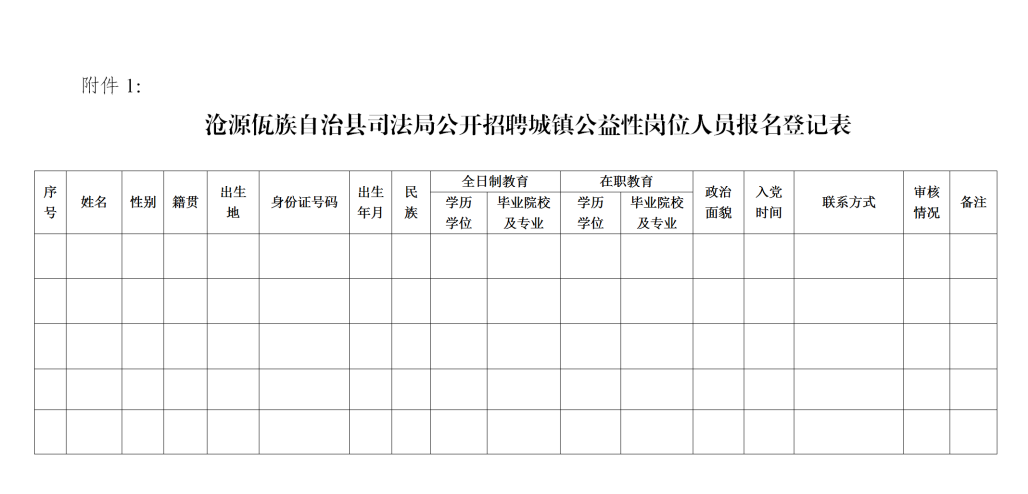 (二)報名地點:滄源佤族自治縣司法局二樓辦公室。