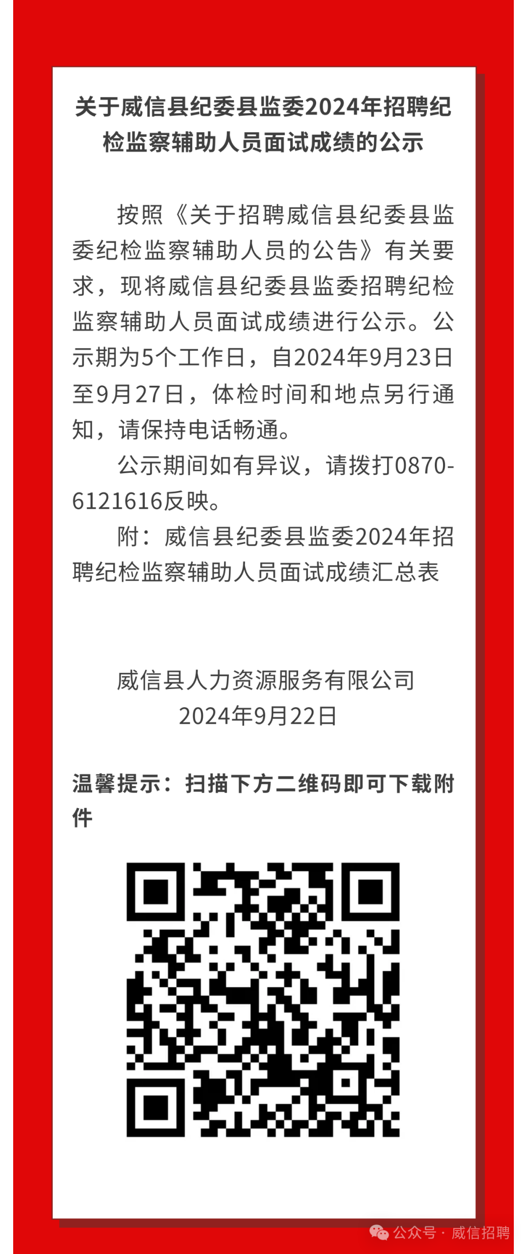 2024年招聘紀(jì)檢監(jiān)察輔助人員面試成績(jī)的公示
