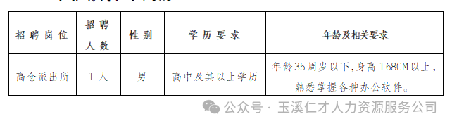 根據(jù)工作需要,經(jīng)研究決定,面向社會(huì)公開(kāi)招聘玉溪市公安局紅塔分局警務(wù)輔助人員1名。現(xiàn)將有關(guān)事項(xiàng)公布如下: