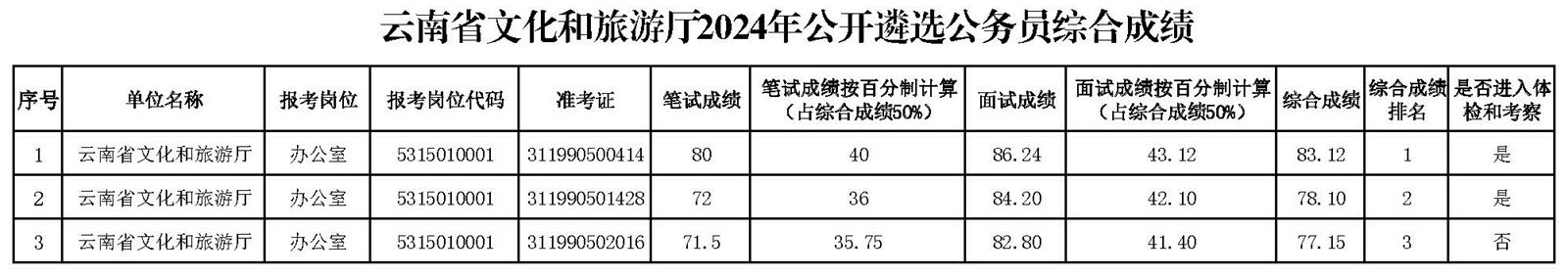 附件:云南省文化和旅游廳2024年公開遴選公務(wù)員綜合成績