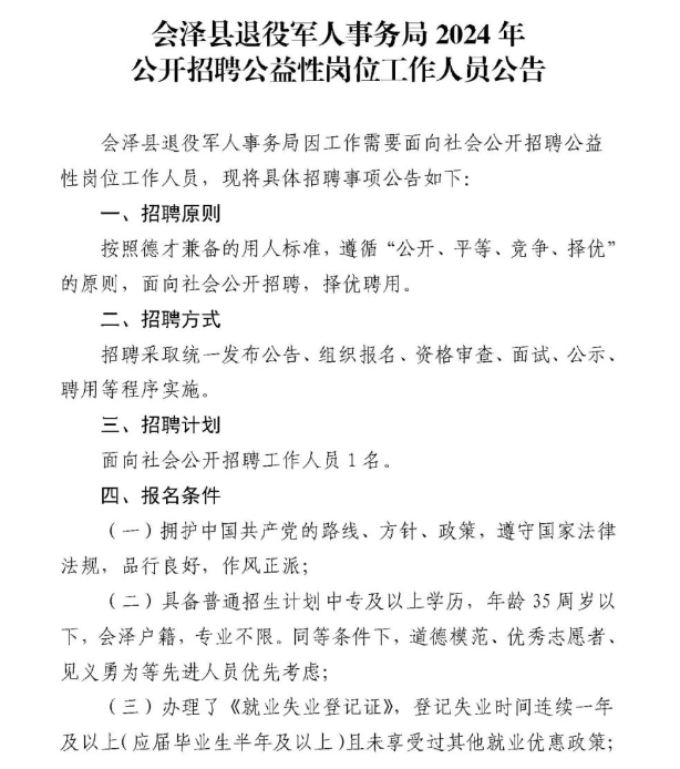 2024年曲靖市會澤縣退役軍人事務(wù)局招聘公告