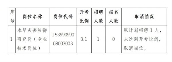 根據(jù)《云南省事業(yè)單位公開招聘工作人員辦法》(云人社發(fā)〔2016〕182號)等有關(guān)文件規(guī)定及《2024年下半年云南省水利廳部分直屬事業(yè)單位公開招聘人員公告》要求,省水利廳按照“每個崗位的繳費人數(shù)與計劃招聘人數(shù)不低于3:1方能開考。未達到3:1的,根據(jù)繳費人數(shù)予以裁減或取消。招聘緊缺急需專業(yè)崗位,經(jīng)各招聘單位申請,云南省水利廳審核同意報云南省人力資源和社會保障廳批準后可放寬開考比例。”的原則,結(jié)合此次實際報名情況,現(xiàn)將崗位裁減情況公告如下: