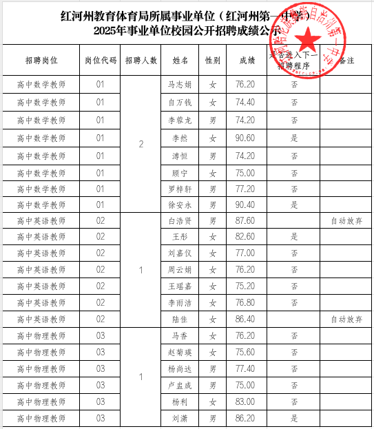 紅河州教育體育局所屬事業(yè)單位(紅河州第一中學(xué))