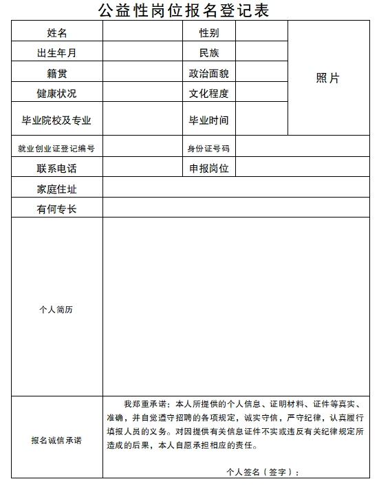 附件:公益性崗位報(bào)名登記表