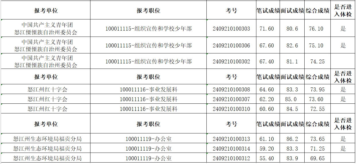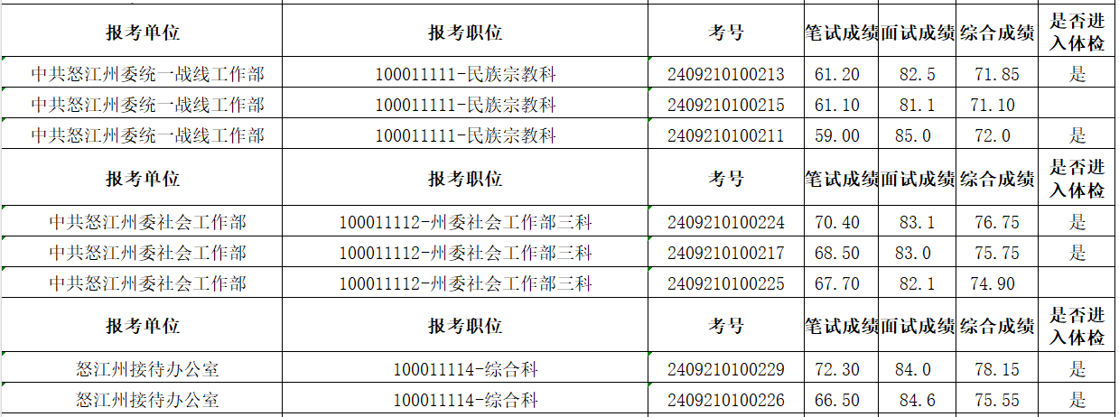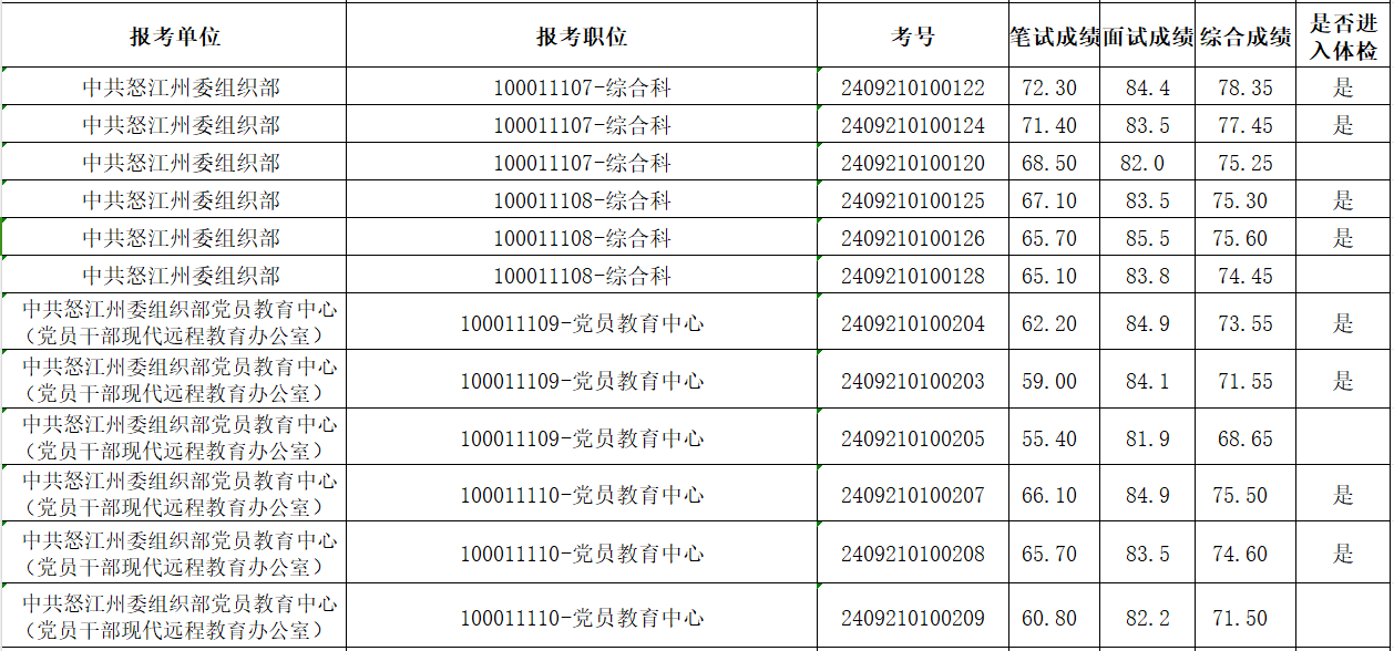 2024年怒江州州級機關(guān)統(tǒng)一公開遴選公務(wù)員綜合成績和進入體檢情況公示