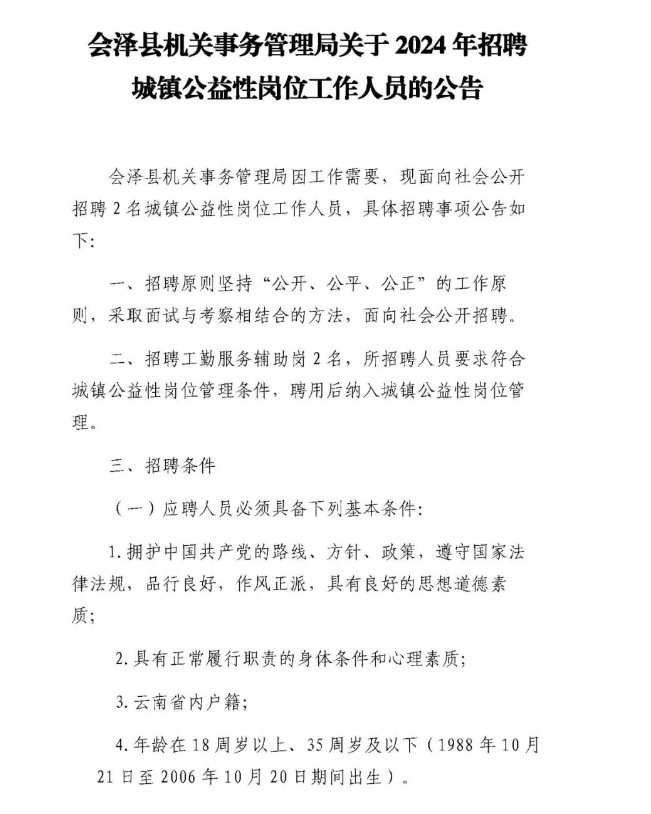 關(guān)于2024年招聘城鎮(zhèn)公益性崗位工作人員的公告