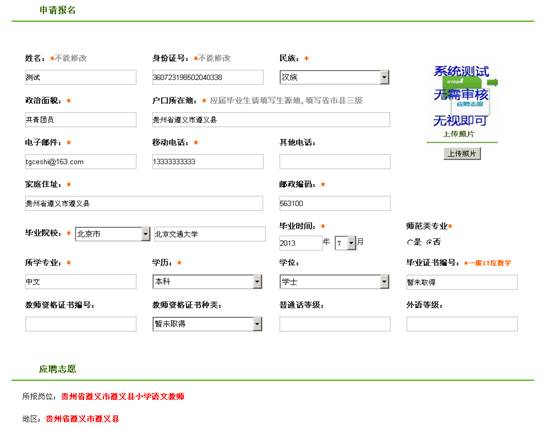 (4)【教師資格證書編號】、【教師資格證書種類】和【外語等級】按照《滇中產(chǎn)業(yè)聚集區(qū)(新區(qū))社會事務(wù)管理局關(guān)于做好2015年中央特崗計劃招聘考試有關(guān)工作的公告》中的崗位條件填寫。