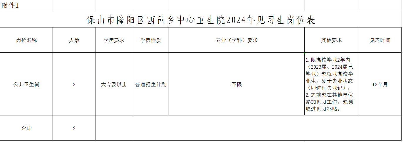 附件1:保山市隆陽(yáng)區(qū)西邑鄉(xiāng)中心衛(wèi)生院2024年見習(xí)生崗位表(2).xlsx