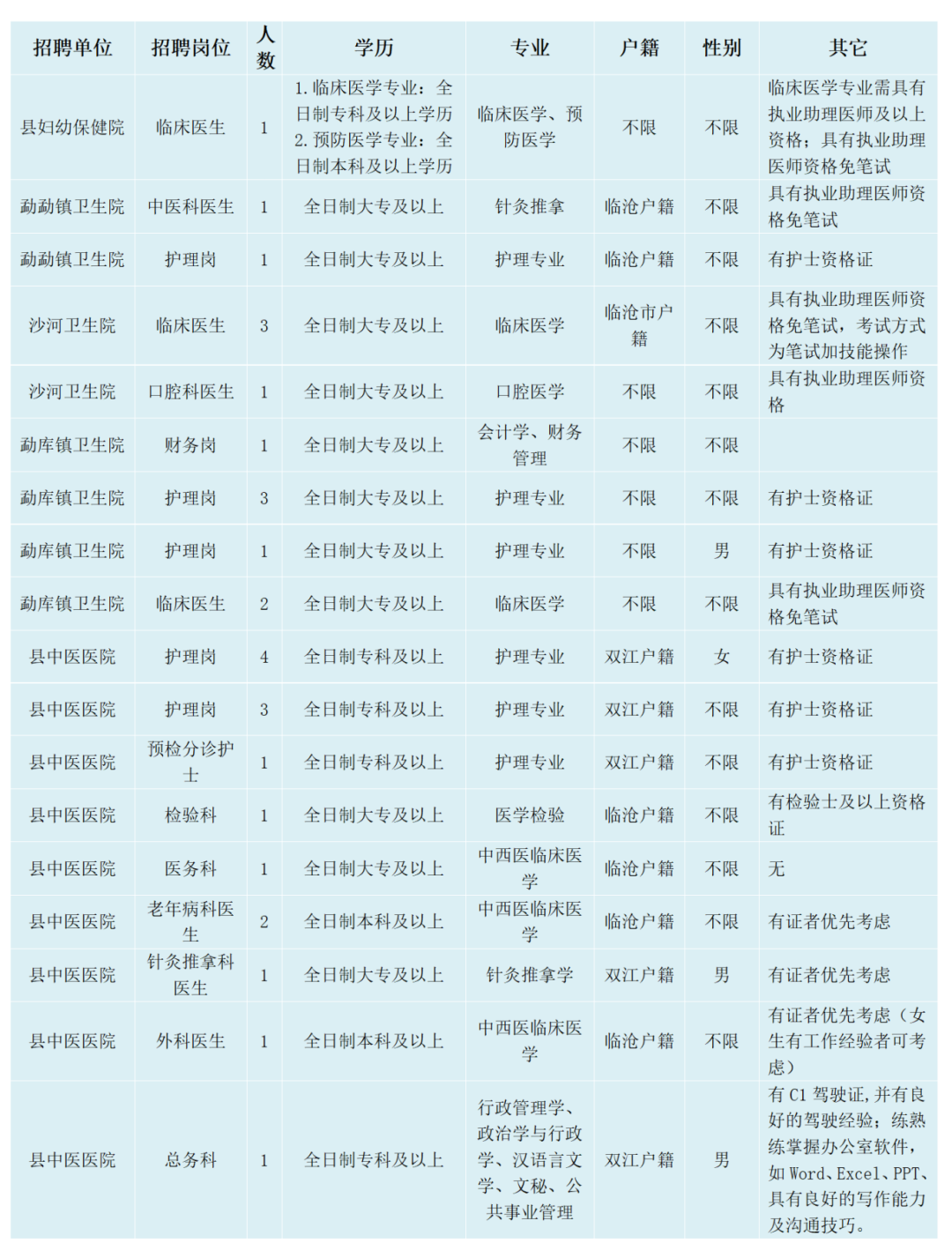 考試內容分為筆試+面試、筆試+技能操作(沙河鄉(xiāng)衛(wèi)生院臨床醫(yī)生崗)兩種。