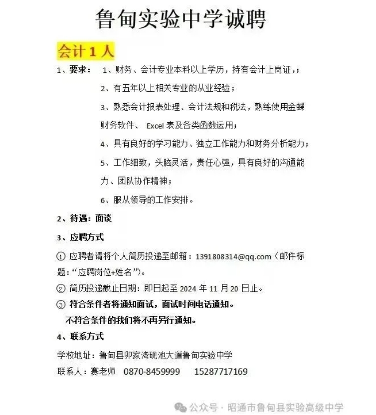 2024年昭通市魯?shù)榭h實(shí)驗(yàn)高級(jí)中學(xué)招聘公告