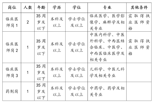 (二)崗位要求為2023年至2025年畢業(yè)的普通招生計劃畢業(yè)生,取得執(zhí)業(yè)醫(yī)師資格的人員可不受畢業(yè)年限限制。
