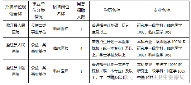 根據(jù)《德宏州人力資源和社會(huì)保障局關(guān)于印發(fā)2025年教育衛(wèi)生部門考核招聘緊缺專業(yè)學(xué)科優(yōu)秀人才工作方案》(德人社發(fā)〔2024〕32號(hào))和《中共盈江縣委機(jī)構(gòu)編制委員會(huì)辦公室編制使用通知單》(盈機(jī)編辦準(zhǔn)〔2024〕115號(hào))文件精神,2025年盈江縣衛(wèi)生健康部門考核招聘緊缺專業(yè)學(xué)科優(yōu)秀人才7名,其中:縣人民醫(yī)院6名,縣中醫(yī)醫(yī)院1名。現(xiàn)將有關(guān)事宜公告如下: