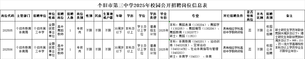 附件1.個(gè)舊市第三中學(xué)2025年校園公開(kāi)招聘崗位信息表.xls