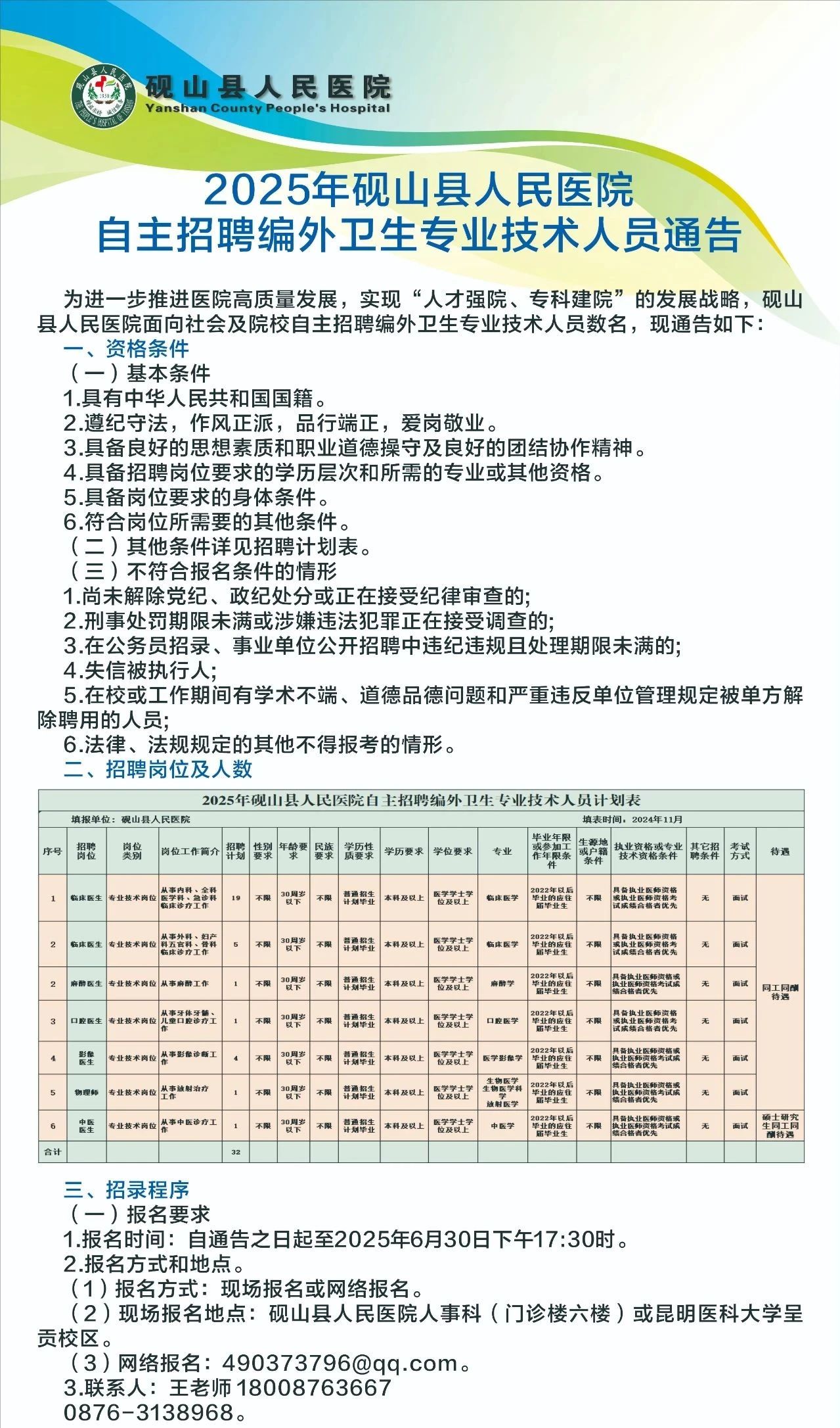 2025年硯山縣人民醫(yī)院自主招聘編外衛(wèi)生專業(yè)技術(shù)人員通告