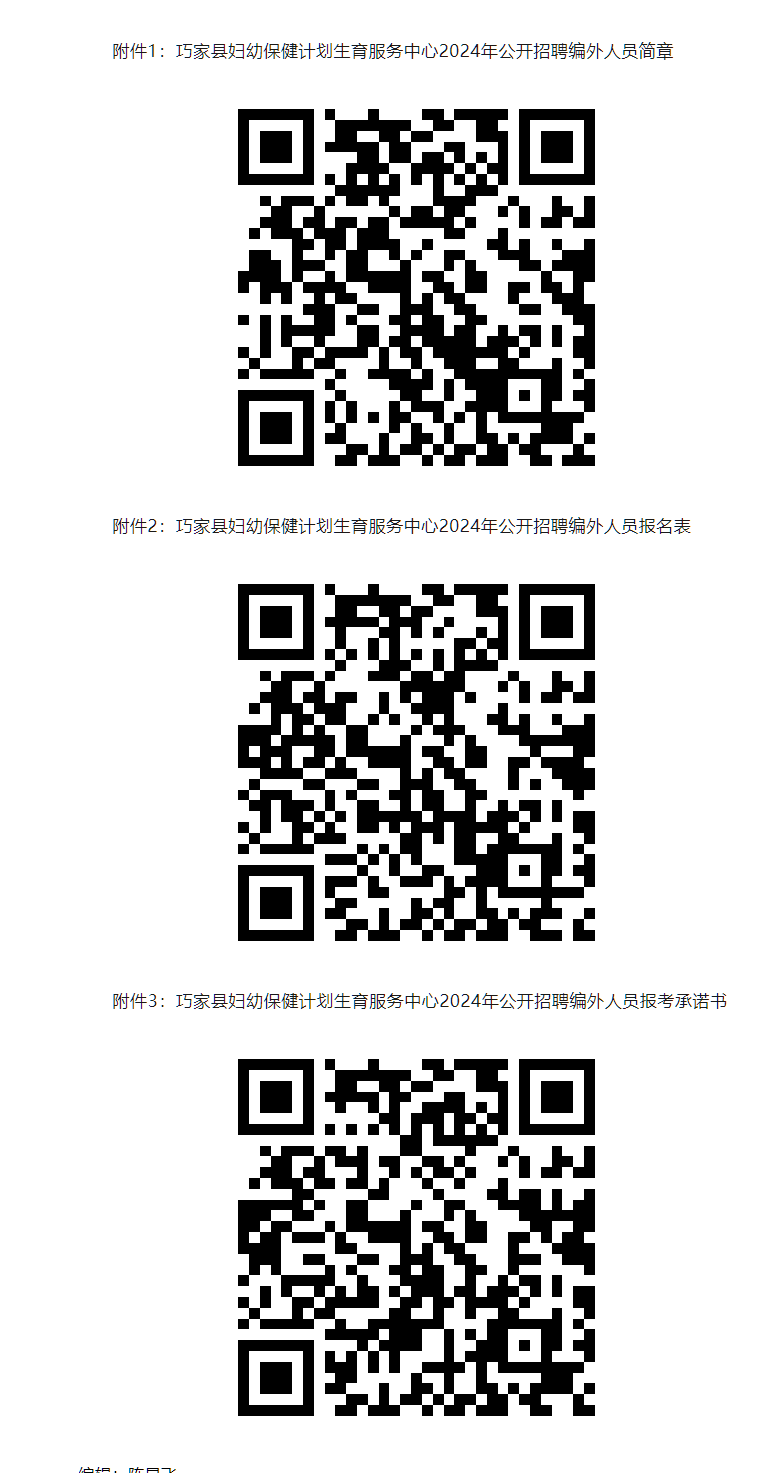 (1)《巧家縣婦幼保健計劃生育服務(wù)中心2024年公開招聘編外人員報名表》(附件2)。