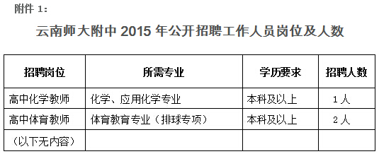 1.云南師大附中2015年公開招聘工作人員崗位及人數(shù)