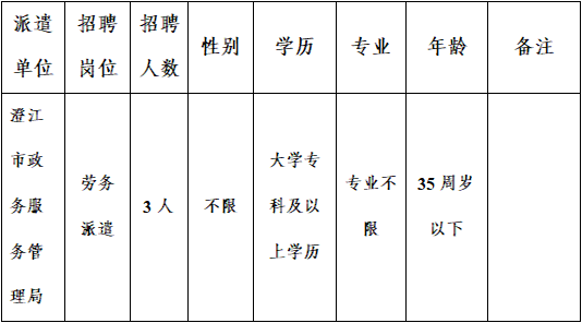 澄江市政務(wù)服務(wù)管理局公開招聘勞務(wù)派遣人員招聘公告