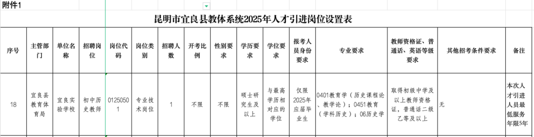 4.具備崗位所需要的其他條件,具體詳見《昆明市宜良縣教體系統(tǒng)2025年人才引進(jìn)崗位設(shè)置表》(附件1)。