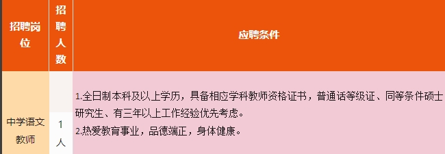 1.全日制本科及以上學(xué)歷,具備相應(yīng)學(xué)科教師資格證書(shū),普通話等級(jí)證、同等條件碩士研究生、有三年以上工作經(jīng)驗(yàn)優(yōu)先考慮。