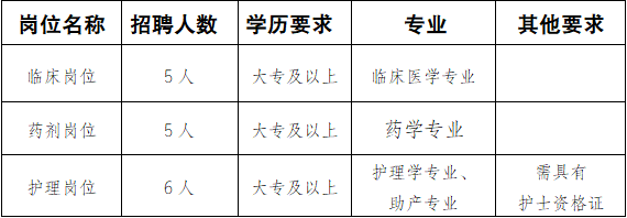招募16名青年就業(yè)見習(xí)人員,其中臨床醫(yī)生崗位5人,藥學(xué)崗位5人,護理崗位6人。具體見下表: