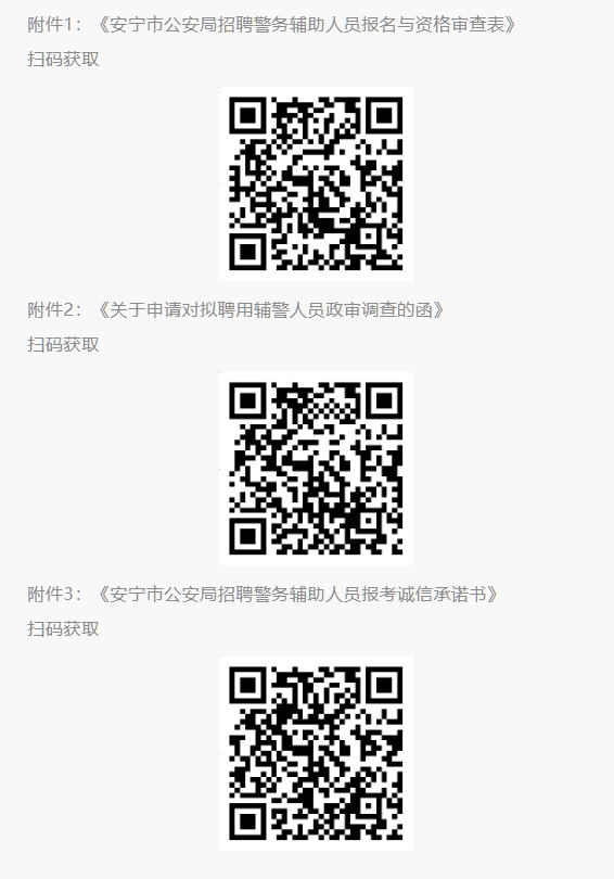 (1)報名表(附件1),下載并填寫《安寧市公安局招聘警務輔助人員報名與資格審查表》、身份證、畢業(yè)證、退伍證及相關資格證書復印件,報名時出示原件審核。